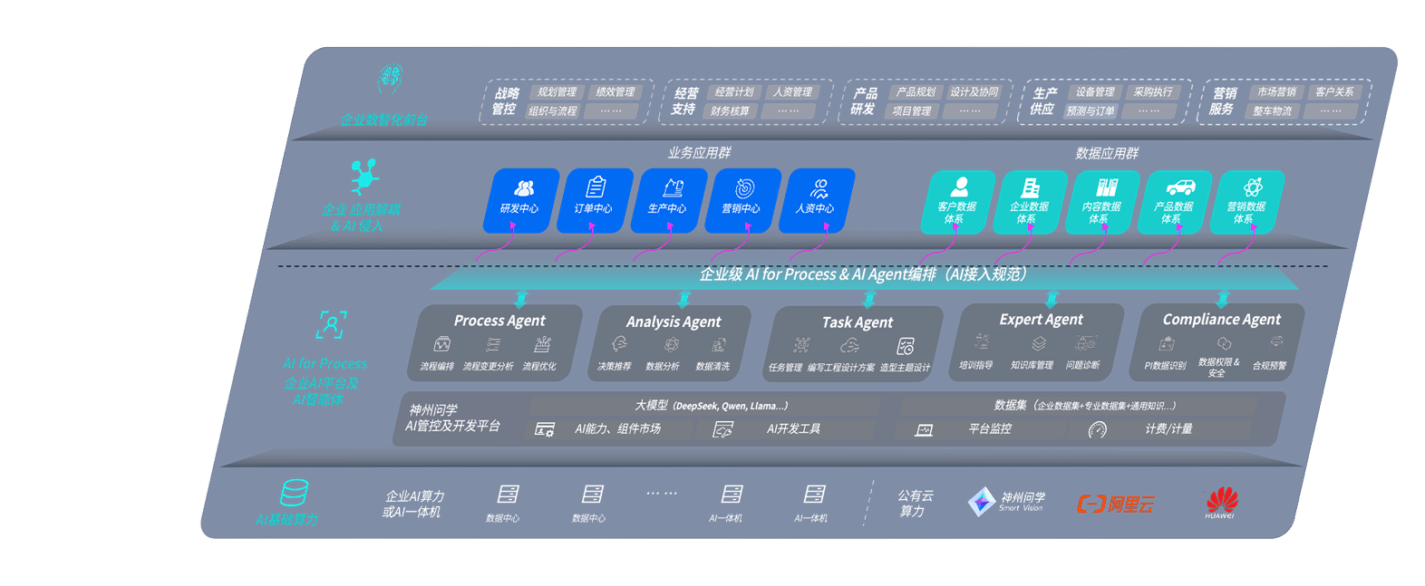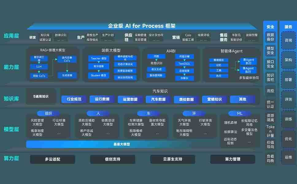 端到端的一站式AI工作空间深度融合了从企业战略规划到日常经营的全流程业务板块,,,定向解决车企内部领域多、、、部门多、、链条长、、、场景碎片化等难题,,,,支持车企快速构建以AI为核心的生产力写作体系,,实现任务执行与AI能力的无缝集成与交互